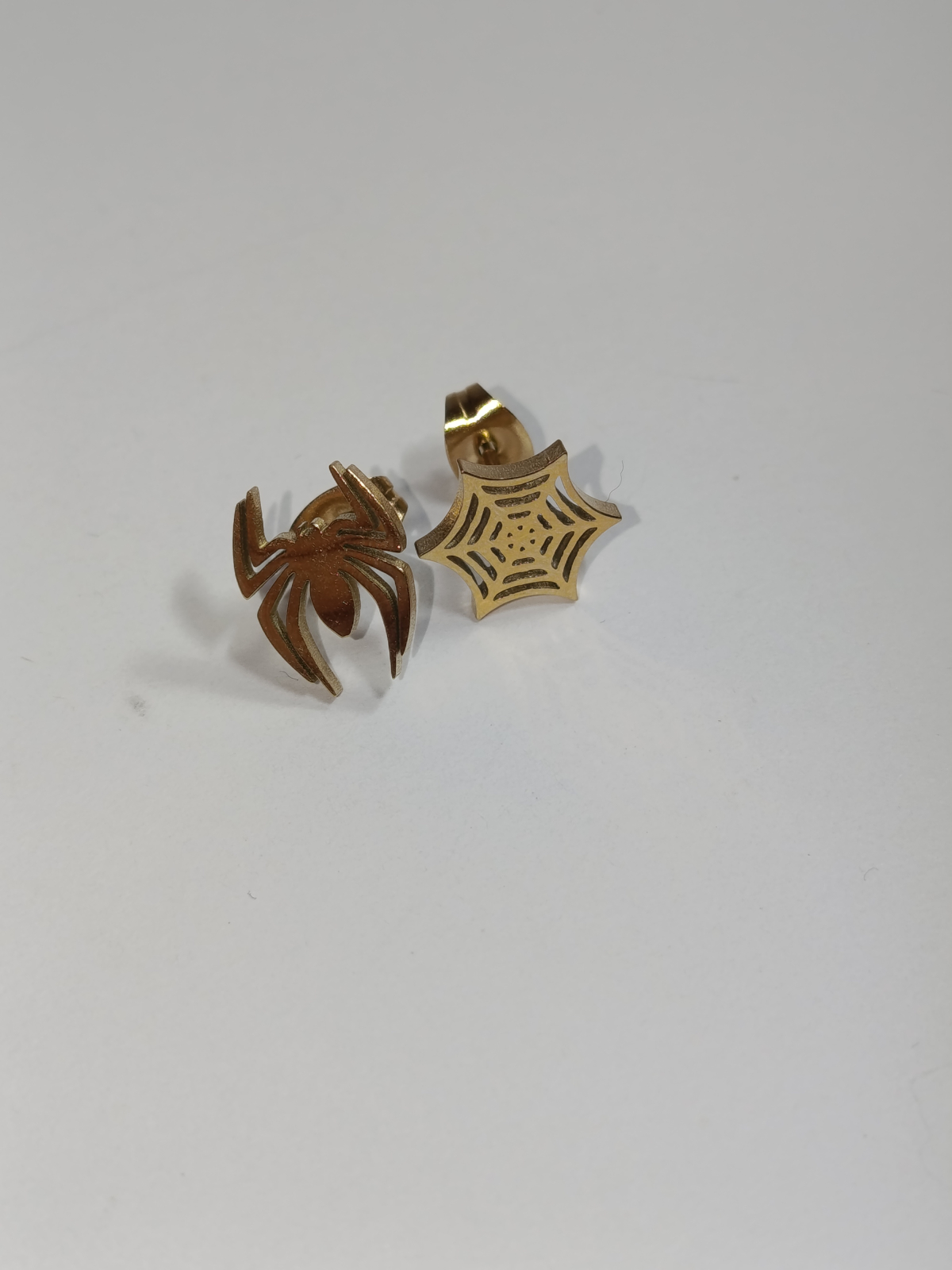 Transformă-ți stilul cu un accesoriu asimetric care îmbină misterul cu rafinamentul modern. Realizați din oțel inoxidabil placat auriu, acești cercei de 1 cm capturează esența arhitecturii naturale prin pânza delicată și păianjenul detaliat, oferind un look captivant și durabil.
