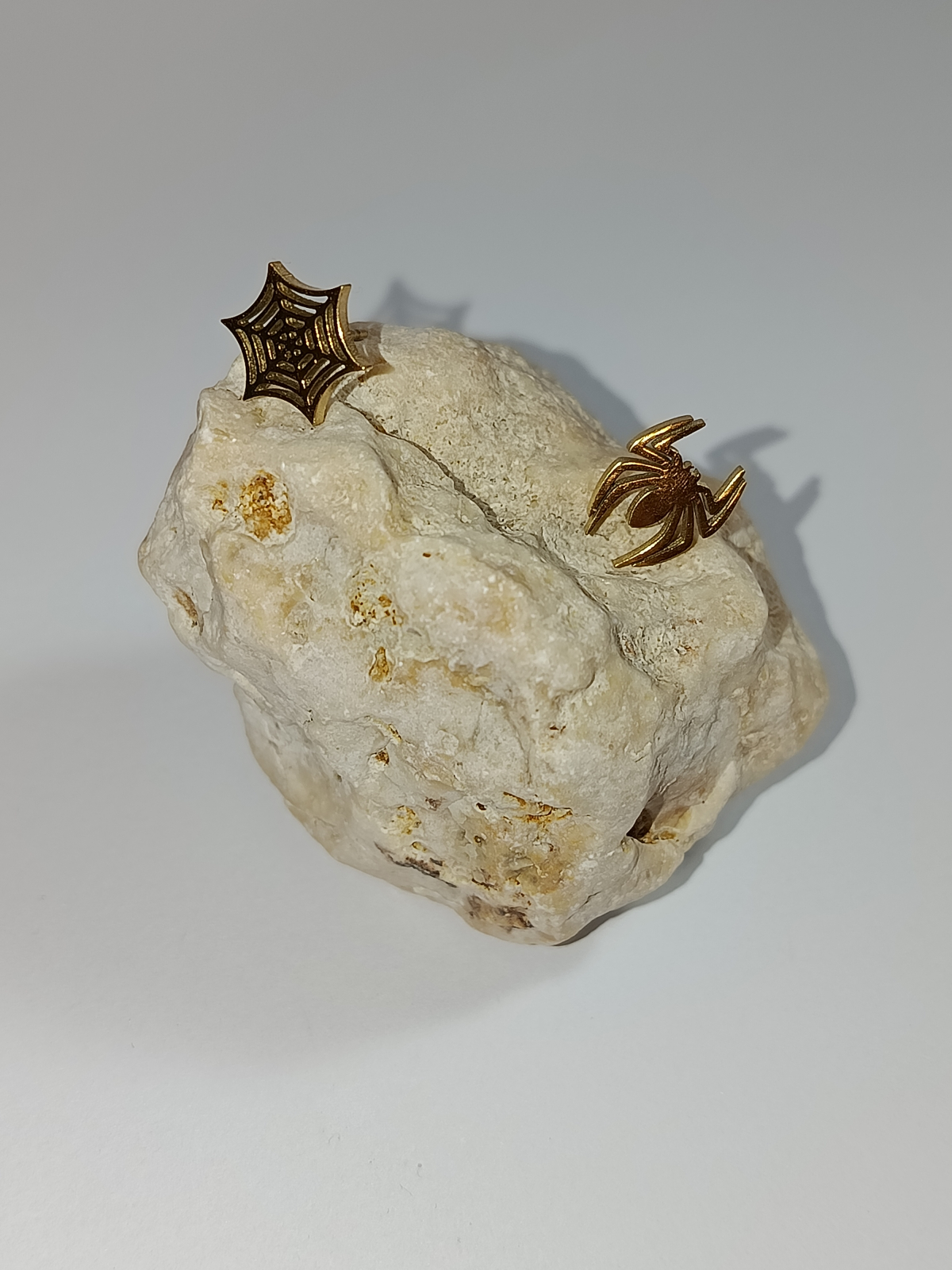 • Asimetrie Creativă: Fiind un set cu două forme diferite, poți alege să îi porți în mod clasic (unul în fiecare ureche) sau, dacă ai mai multe piercing-uri, să îi porți pe amândoi în aceeași ureche pentru un efect vizual de „poveste” (păianjenul care urcă spre pânză).