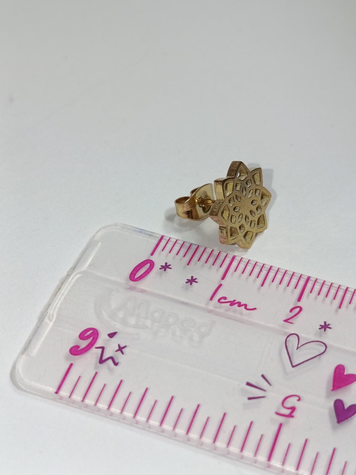Cercei hipoalergenici „Mandala Iubirii”, 1 cm. Design minimalist aurit/argintiu, cu șurub. Bijuterii rezistente la apă, perfecte pentru pielea sensibilă.