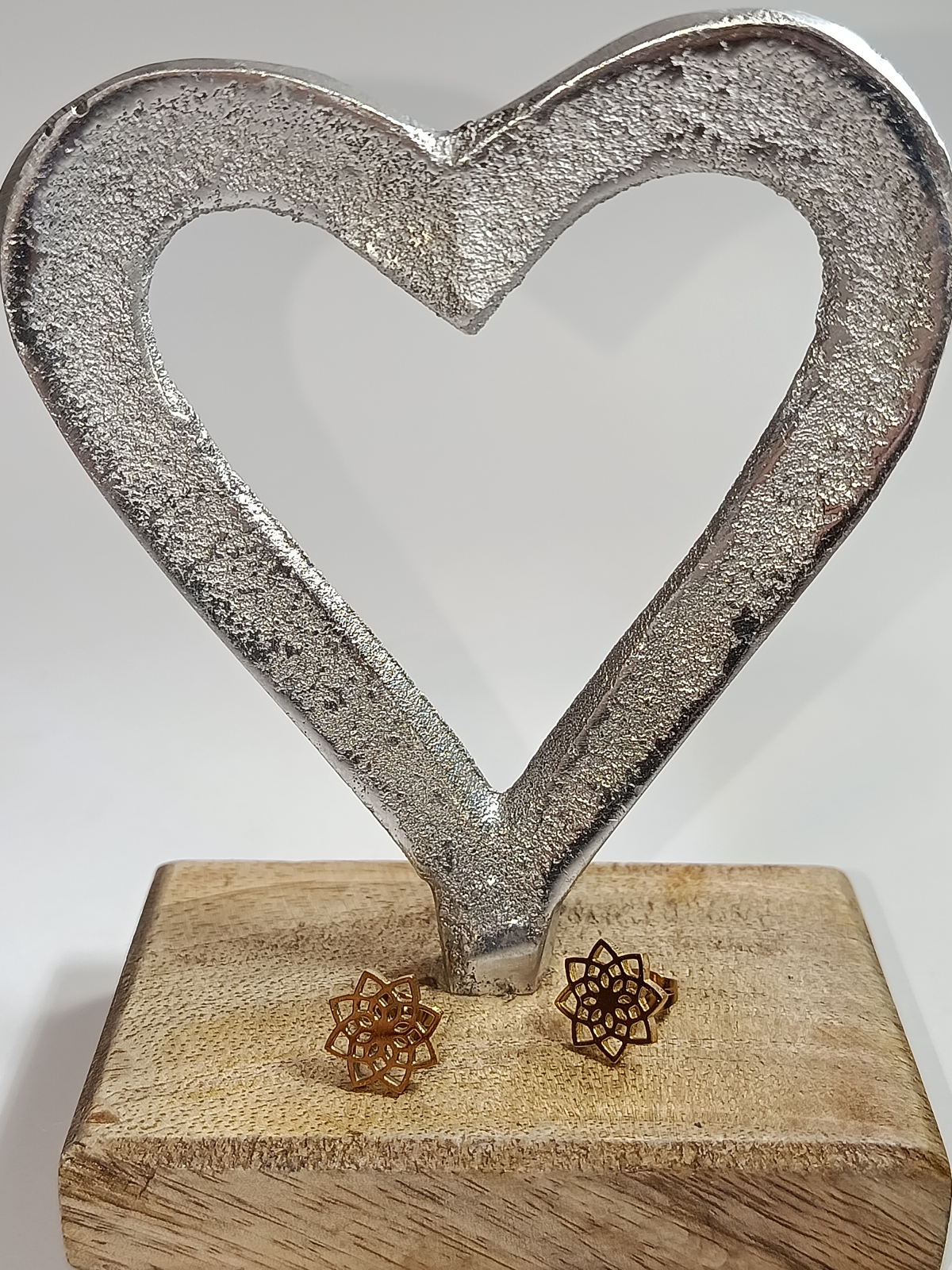 Descoperiți colecția noastră de cercei din inox de înaltă calitate, perfect concepuți pentru a adăuga o notă de rafinament discret oricărei ținute. Modelul „Mandala Iubirii” combină designul minimalist cu simbolismul unui filigran delicat, disponibil în finisaje de inox aurit (auriu) și inox argintiu.