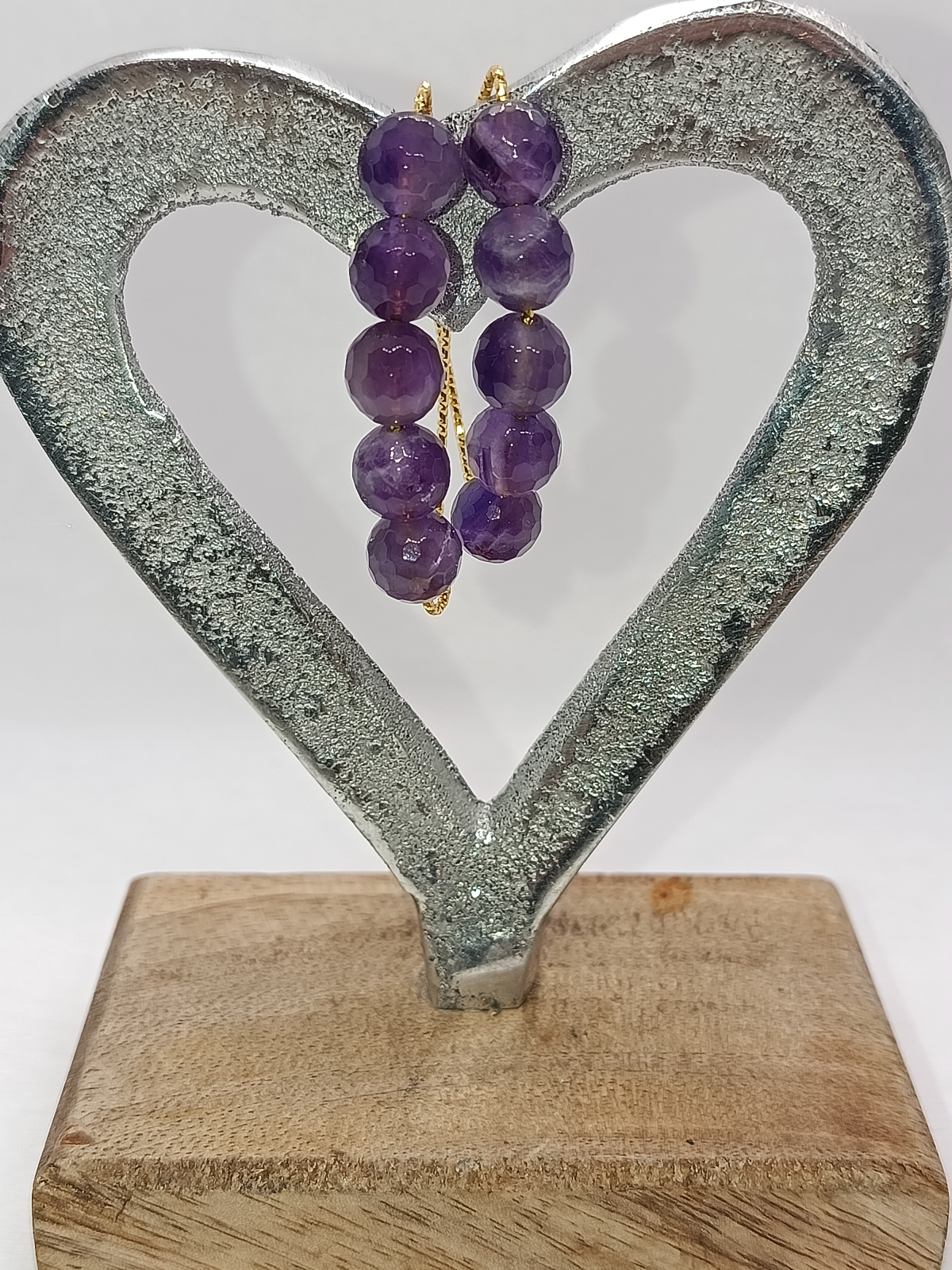 Descoperă o bijuterie care rezonează cu liniștea ta interioară. Acești cercei handmade, delicați și eleganți, îmbină strălucirea regală a ametistului fațetat cu siguranța materialelor premium.