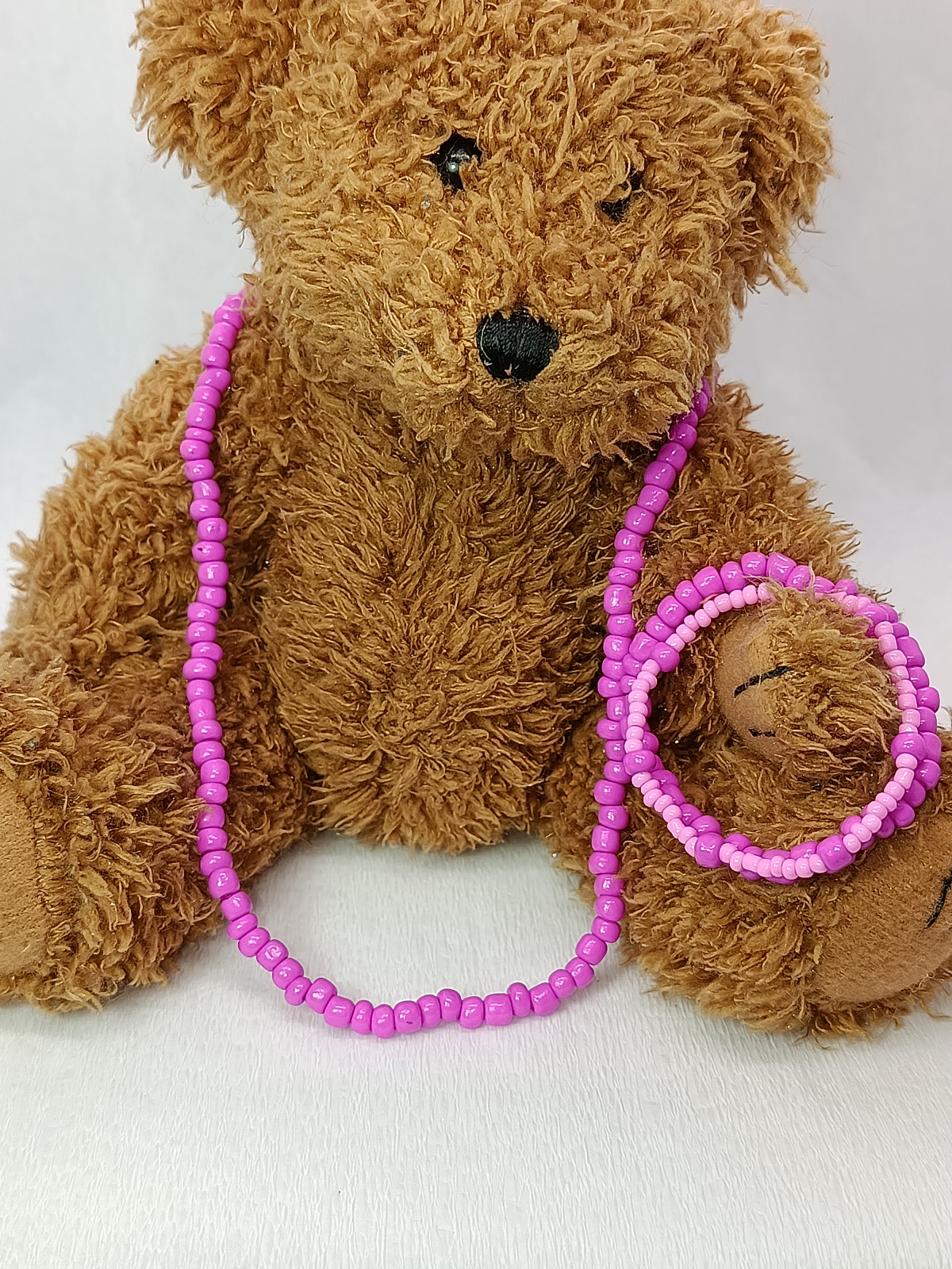 Bijuteriile din mărgele înșirate pe elastic sunt delicate și necesită o îngrijire atentă. Evită contactul cu apa(sarata,cu clor), parfumurile, cremele sau detergenții, care pot slăbi elasticul și deteriora luciul mărgelelor. Nu le purta în timpul somnului, la duș sau în activități intense. Păstrează-le într-o cutie uscată, departe de lumină directă și umiditate, pentru a le prelungi frumusețea și durabilitatea.