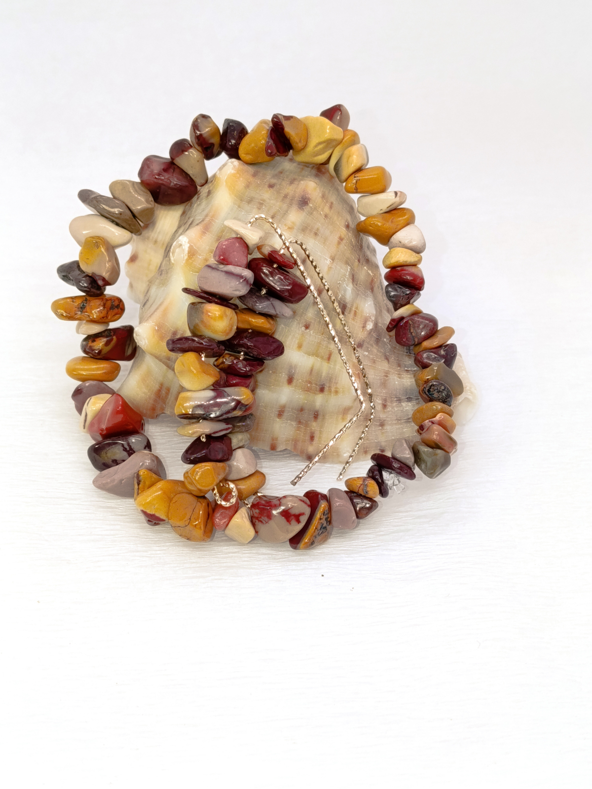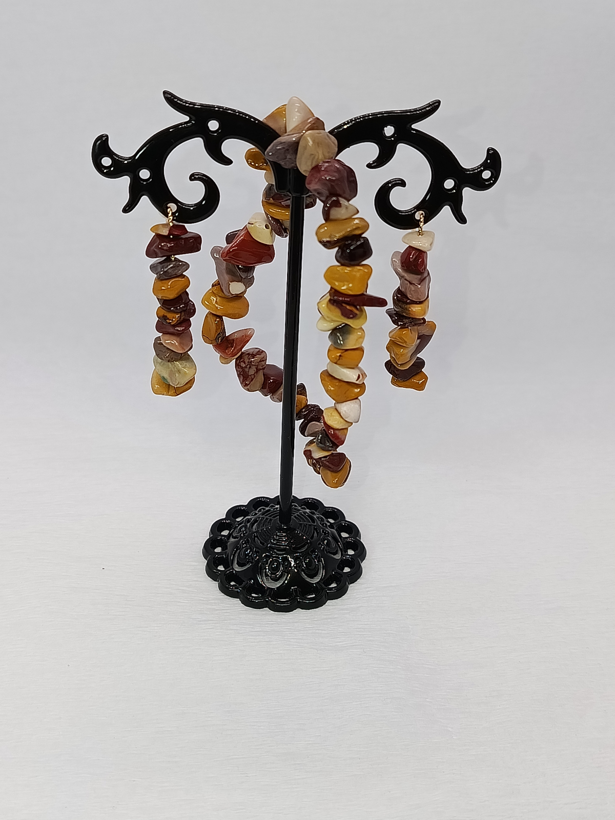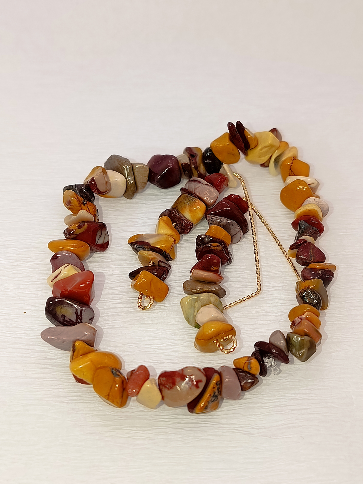 Lasă-te inspirată de frumusețea culorilor tomnatice cu setul handmade „Armonia Toamnei”, compus dintr-o brățară elastică și o pereche de cercei eleganți. Realizat din pietre de mookait, acest set aduce căldura și farmecul toamnei în orice ținută.