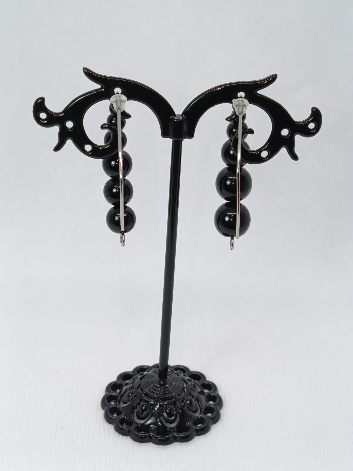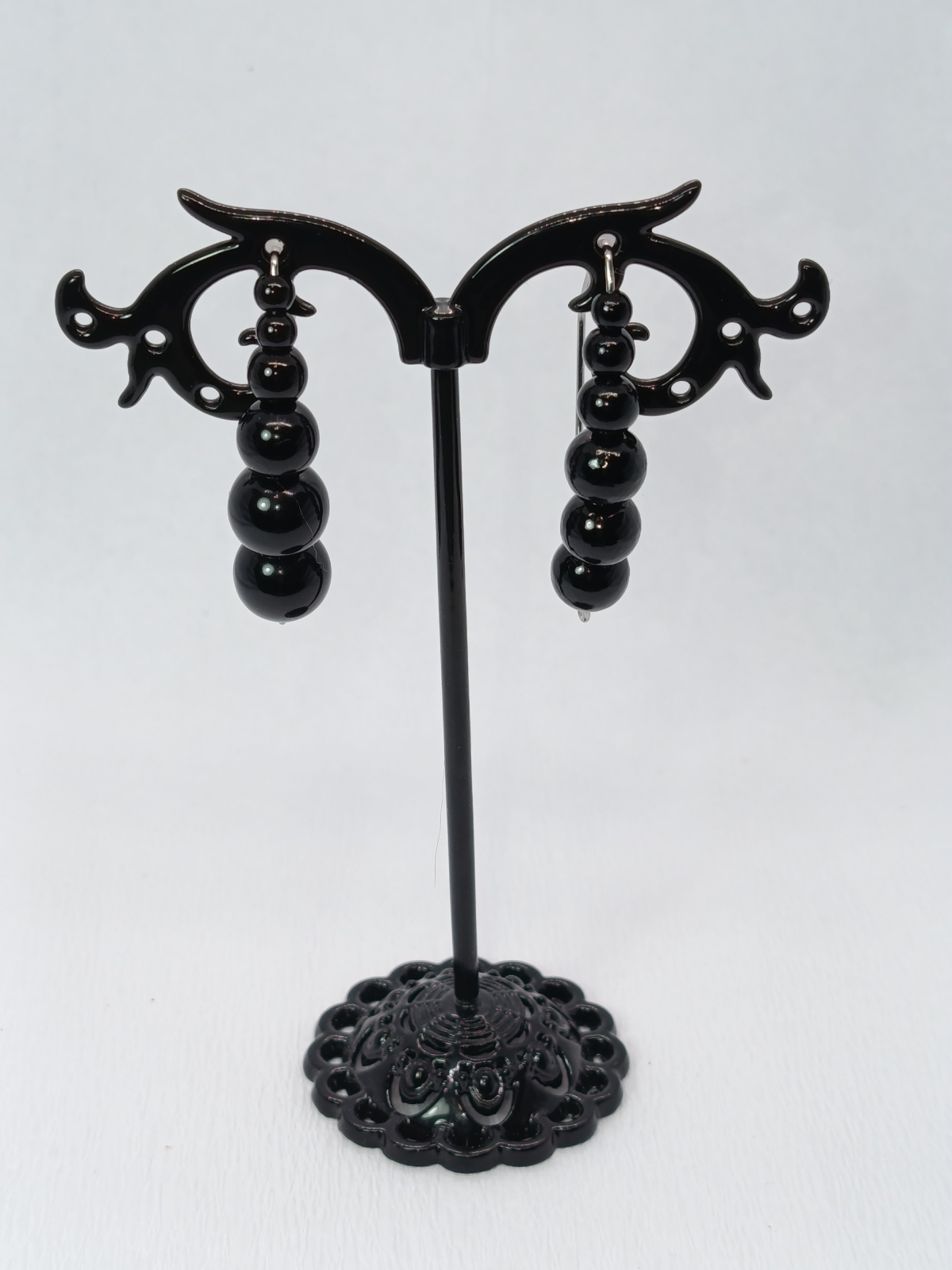 • Design: Cercei eleganți cu măargele negre de diferite dimensiuni.