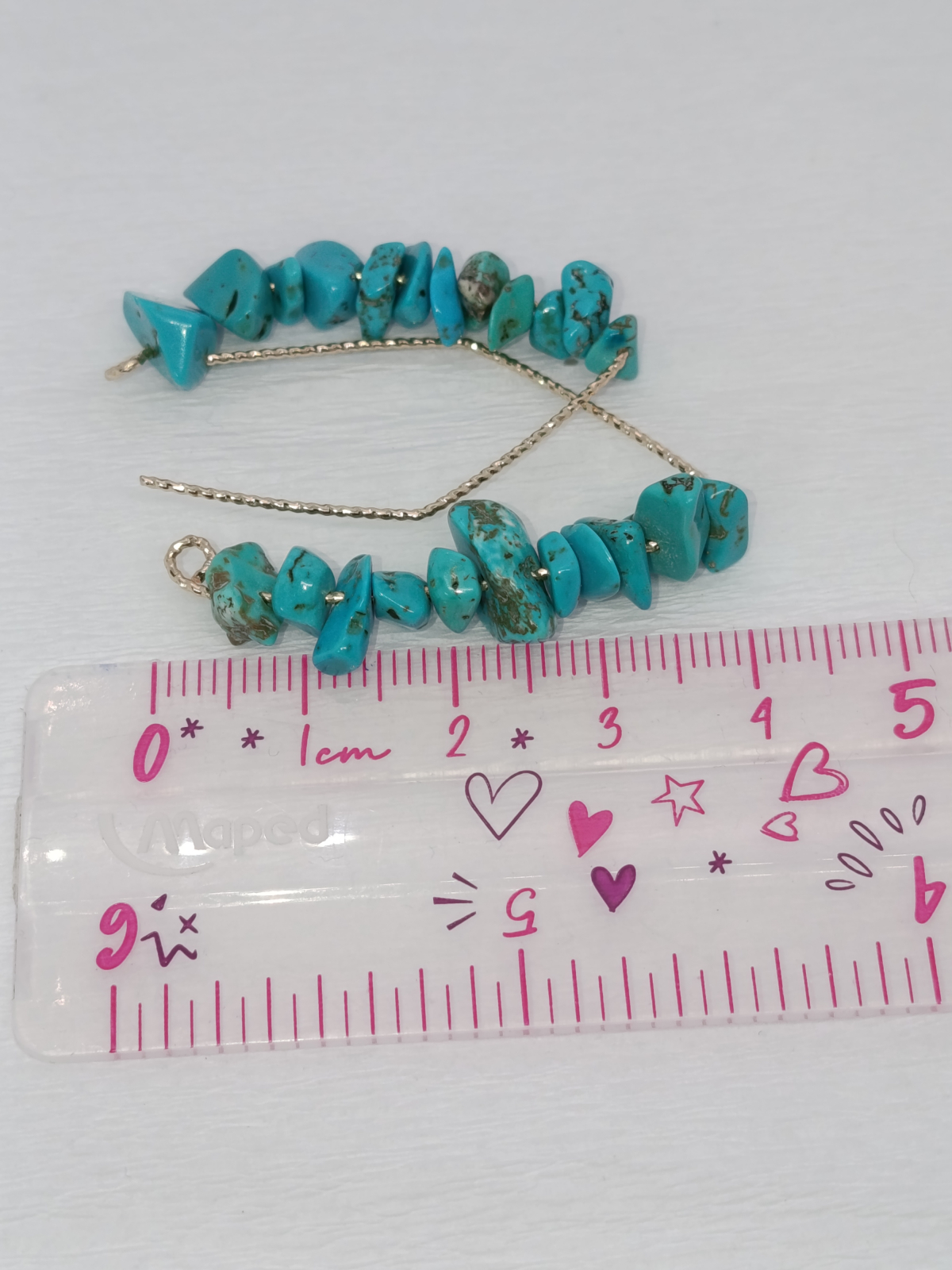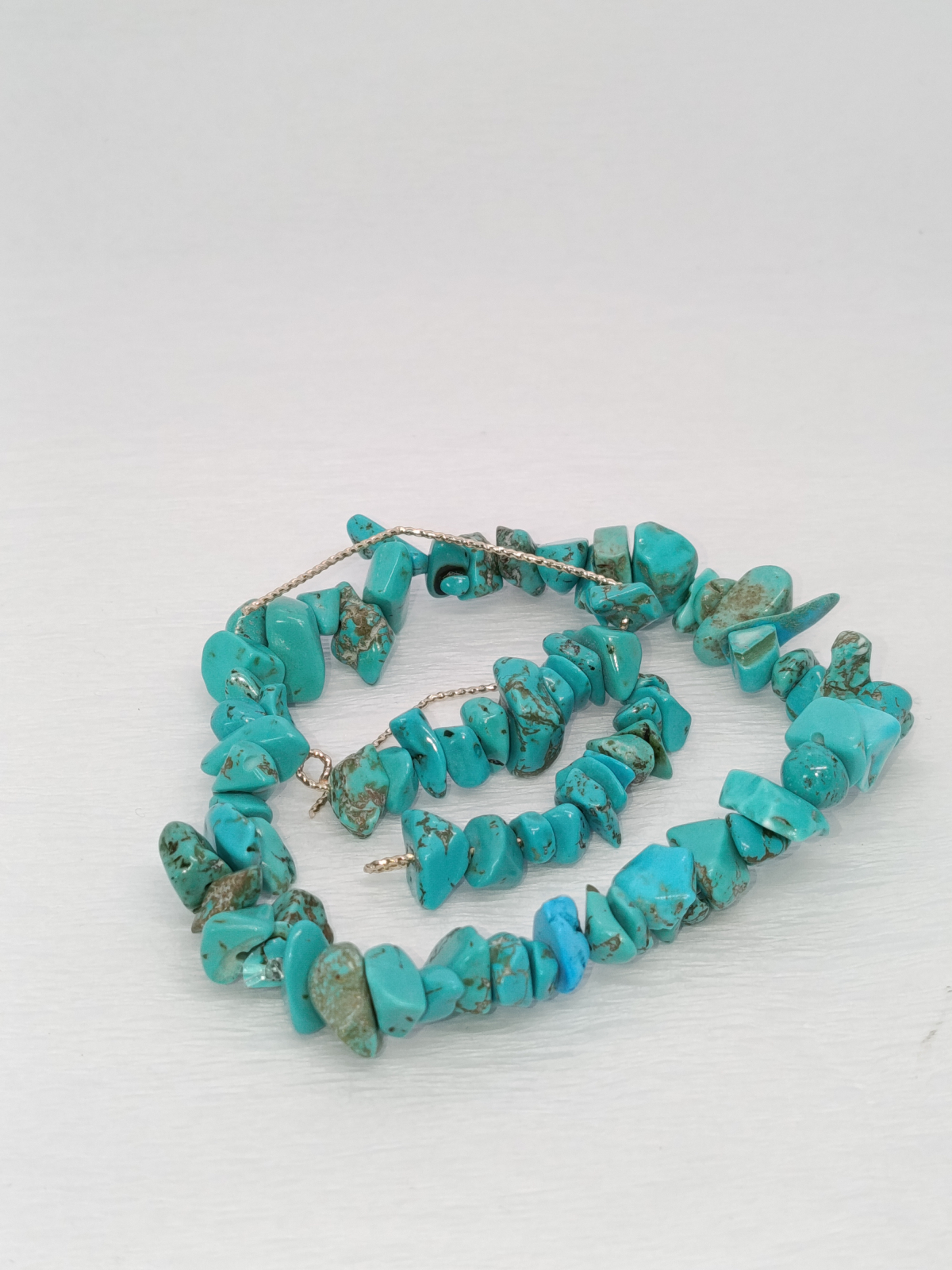 Brățara: Este creată din șiruri de pietre chips turcoaz, înșirate pe un elastic rezistent. Cu o dimensiune de 18-20 cm, se așează confortabil și elegant pe orice încheietură, fiind perfectă pentru a fi purtată zilnic sau la ocazii speciale.