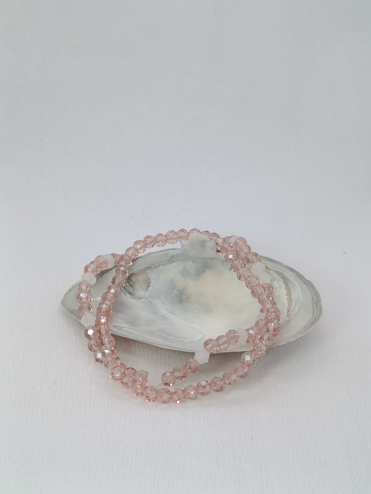 Cristalele biconice,sunt renumite pentru capacitatea lor de a capta și reflecta lumina, creând un joc strălucitor de irizații cu fiecare mișcare.Elasticul rezistent și discret, asigură o purtare extrem de confortabilă și o adaptabilitate perfectă la încheietură.Setul conține două brățări handmade: prima, de 17 cm, este integral de culoare roz șampanie, în timp ce a doua, de 18-19 cm, îmbină cristale roz cu accente luminoase de alb