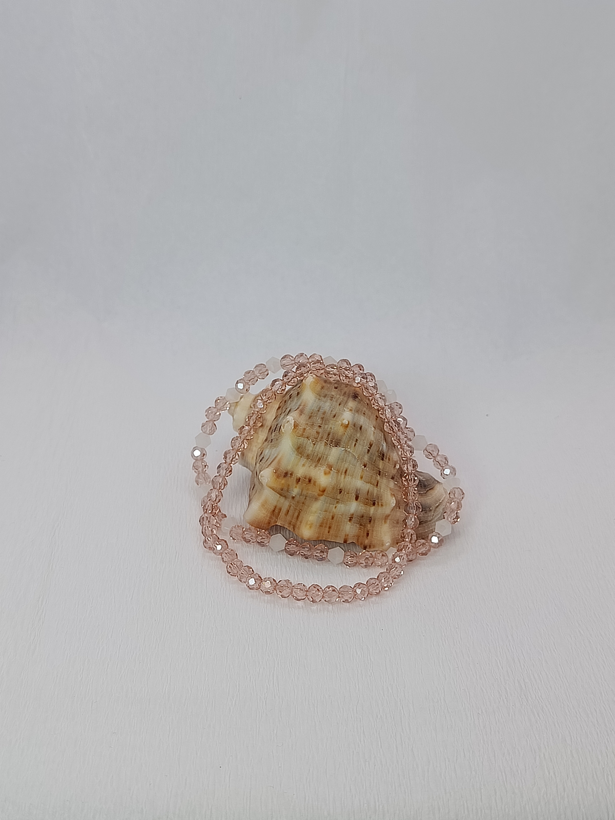 Materiale: Cristale biconice de înaltă calitate, în nuanțe de roz șampanie și mici accente de culoare albă.