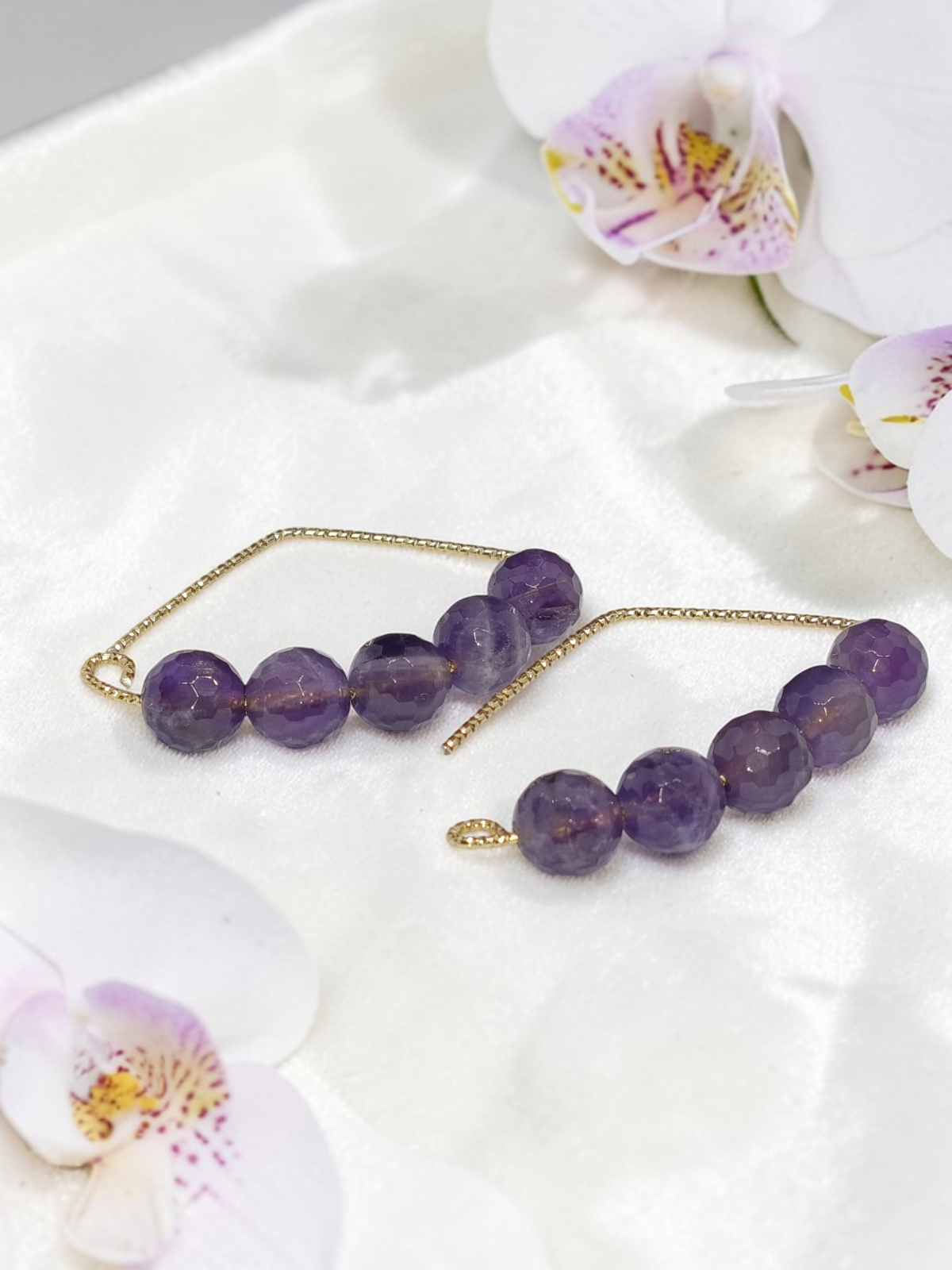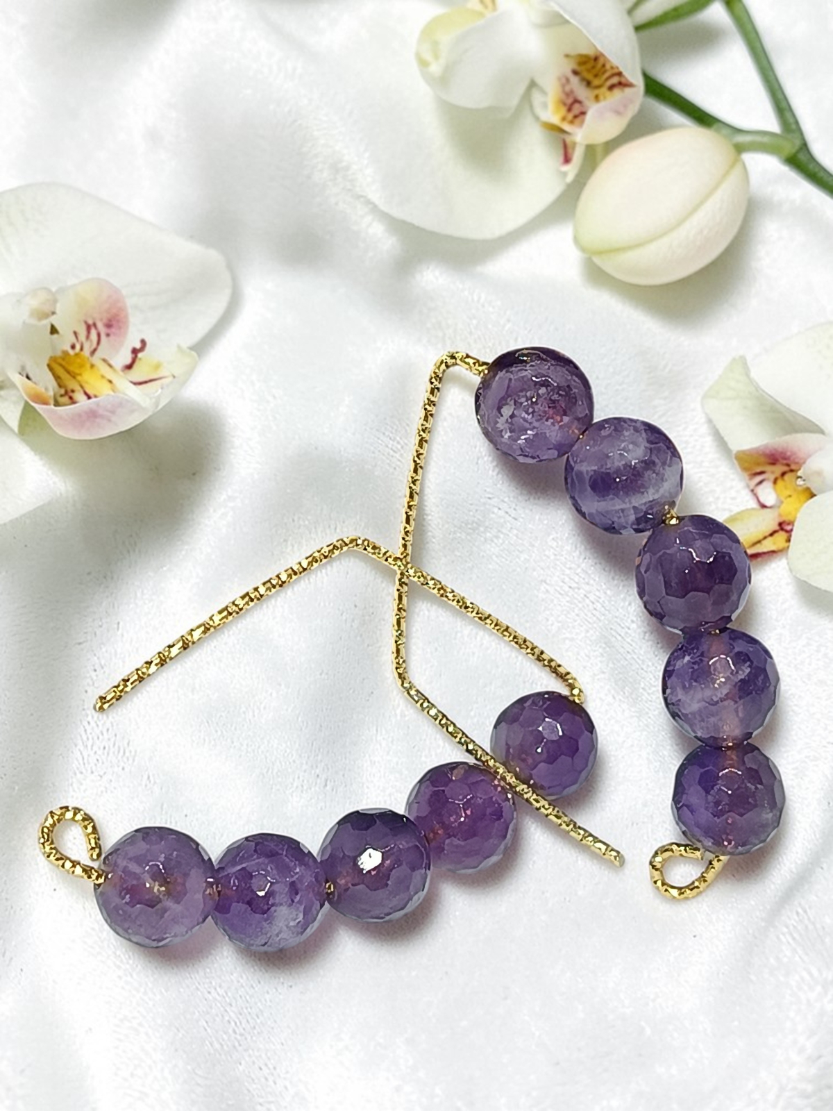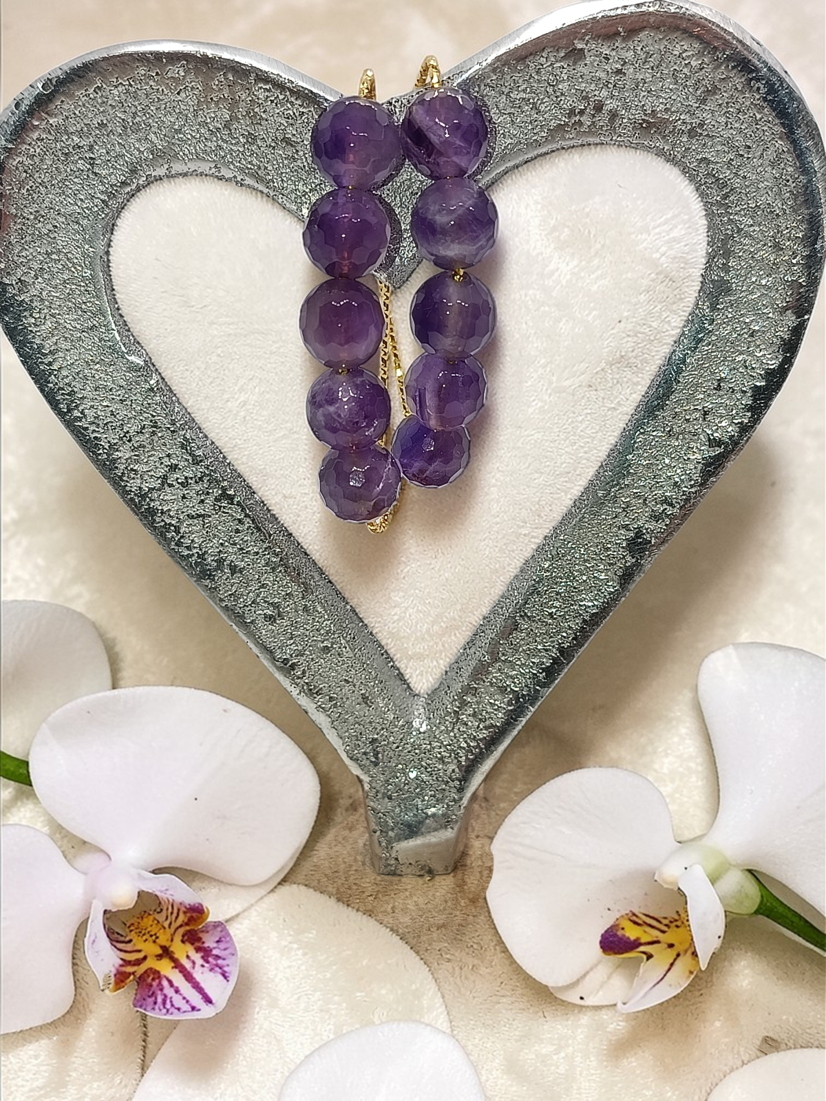 Descoperă o bijuterie care rezonează cu liniștea ta interioară. Acești cercei handmade, delicați și eleganți, îmbină strălucirea regală a ametistului fațetat cu siguranța materialelor premium.