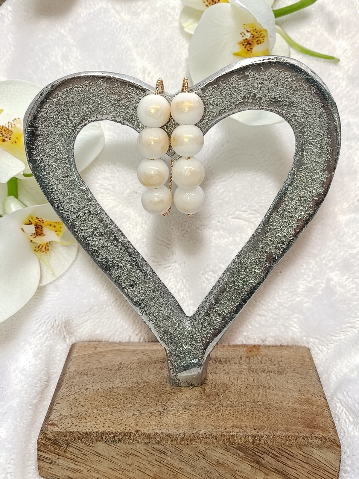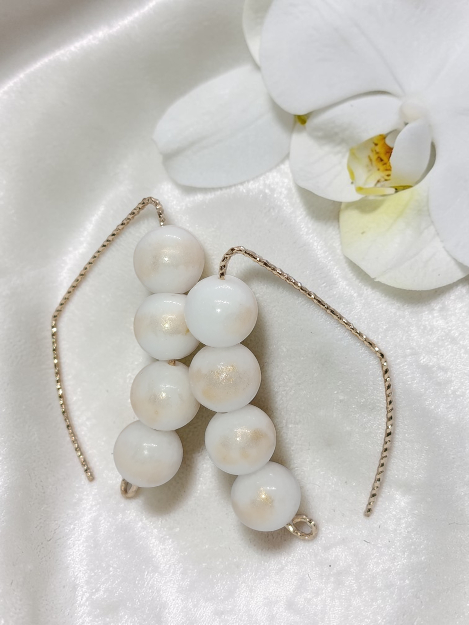 Acești cercei rafinați sunt realizați manual din sârmă hipoalergenică modelată cu grijă, într-un design delicat și modern. Piesele sunt accesorizate cu pietre semiprețioase de jad alb, care reflectă subtil lumina și oferă un aer pur și elegant fiecărei ținute.