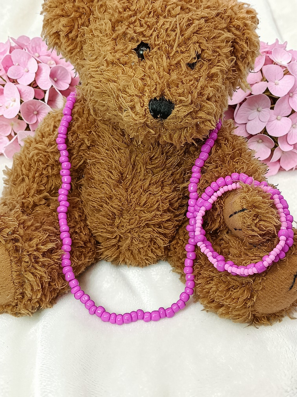 Bijuteriile din mărgele înșirate pe elastic sunt delicate și necesită o îngrijire atentă. Evită contactul cu apa(sarata,cu clor), parfumurile, cremele sau detergenții, care pot slăbi elasticul și deteriora luciul mărgelelor. Nu le purta în timpul somnului, la duș sau în activități intense. Păstrează-le într-o cutie uscată, departe de lumină directă și umiditate, pentru a le prelungi frumusețea și durabilitatea.